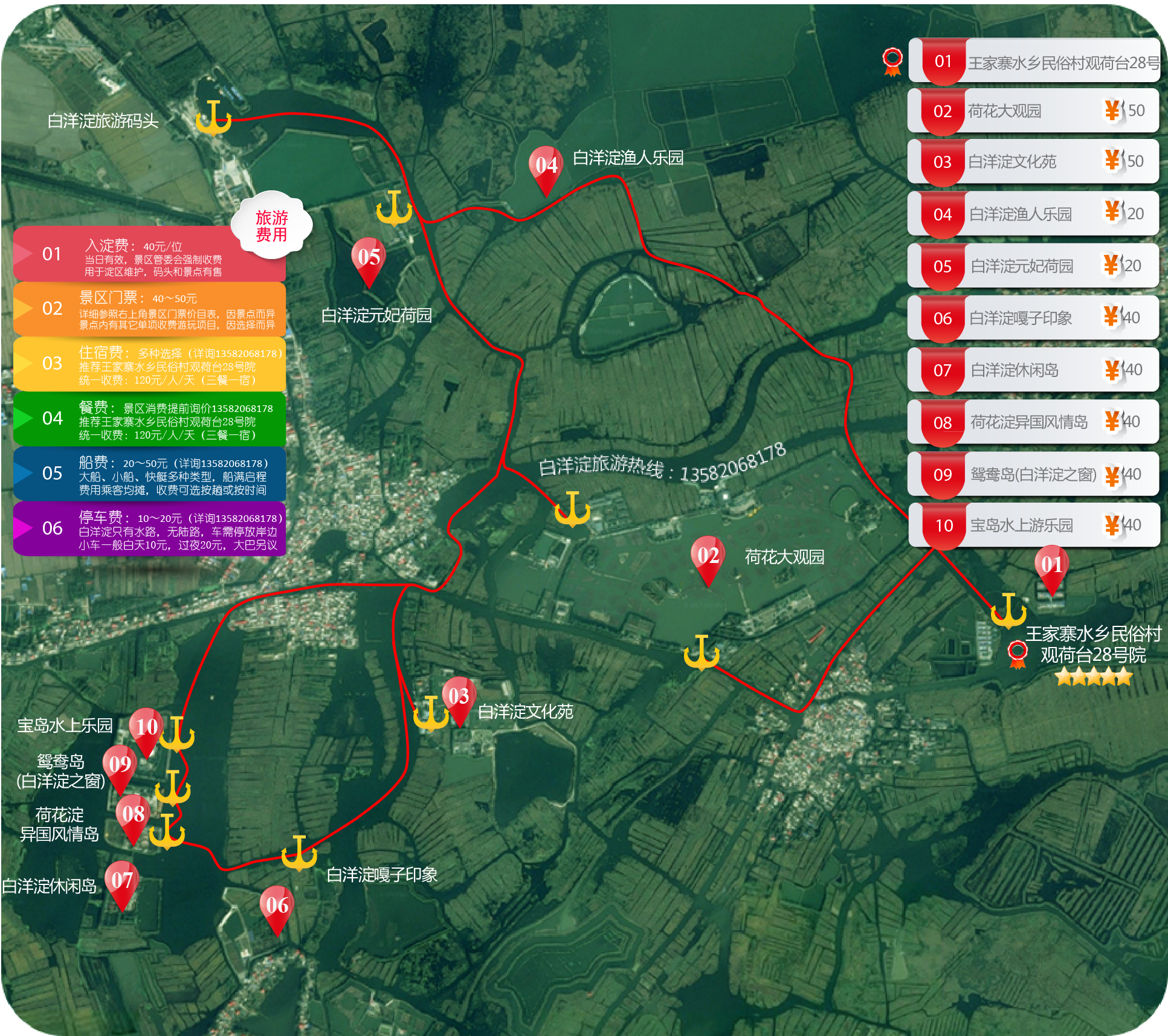 白洋淀景区旅游路线导览图(地图与卫星航拍图)